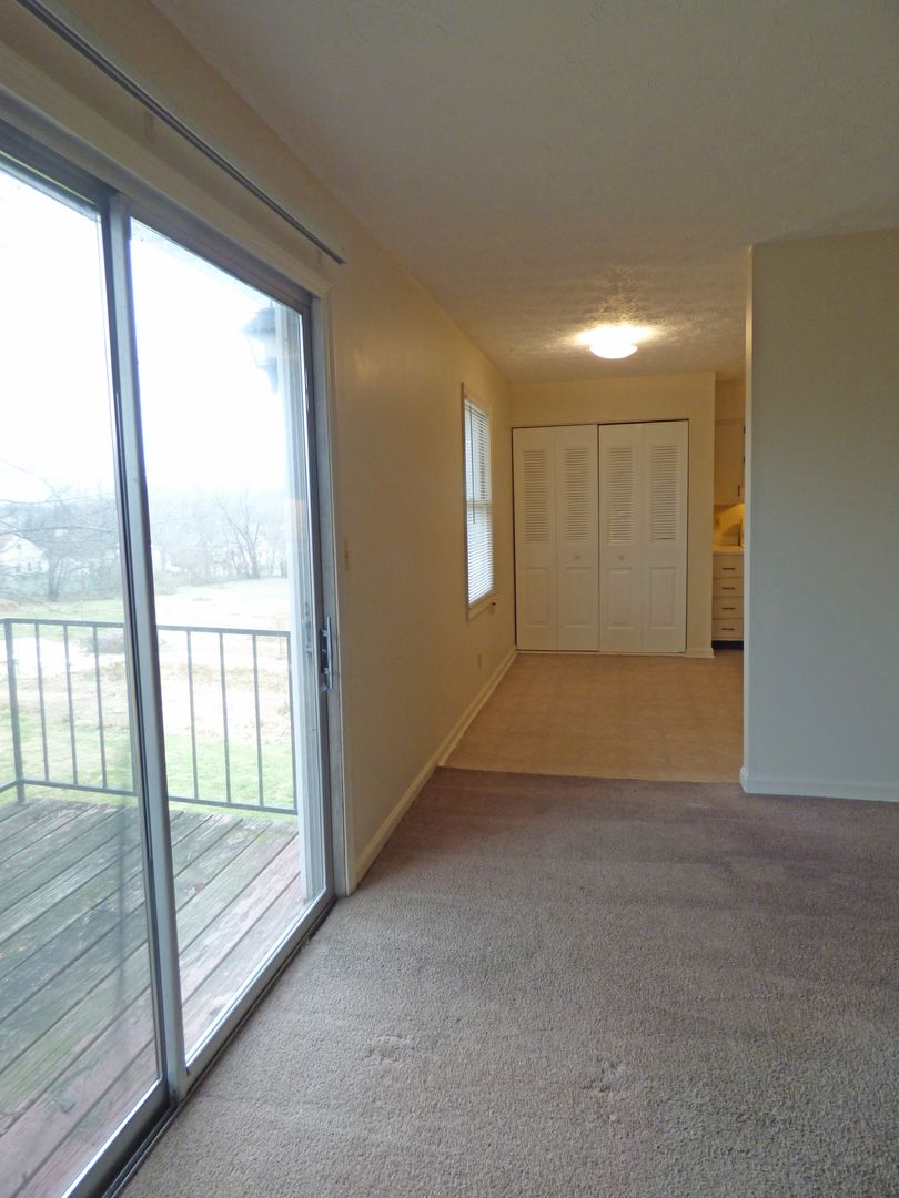 Large Living Room with Glass Doors leading to a Deck. Biscayne Apartments is located at the end of a cul-de-sac road off North Broadway, with Lots of Trees and Green Space, and a Community Garden! Off-Street Parking with plenty of spaces. Pets Ok! (Note: Apartment is Non-smoking, and smoking is allowed outdoors only.) Note: Photos are representative and may not be of this individual apartment.